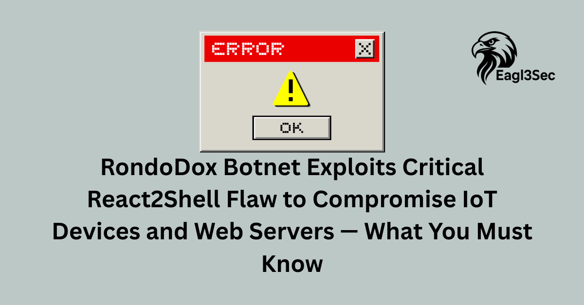 Security researchers have revealed that the RondoDox botnet, a rapidly evolving and highly automated malware network, is now actively exploiting a critical remote code execution (RCE) vulnerability known as React2Shell (CVE-2025-55182) to infiltrate vulnerable web applications and IoT devices around the world. This campaign has been ongoing for months — taking advantage of unpatched servers and embedded systems to install botnet components, deploy cryptominers, and expand the botnet’s reach across diverse environments. The RondoDox botnet’s aggressive exploitation of React2Shell — alongside a growing arsenal of other critical vulnerabilities — underscores the severity of the threat and highlights the urgent need for organizations to patch affected systems, strengthen network defenses, and monitor for signs of compromise. Below is an in-depth, SEO-optimized, 1500-word analysis of the RondoDox campaign, its tactics, impact, and mitigation recommendations. What Is the React2Shell Vulnerability? React2Shell (CVE-2025-55182) is a critical remote code execution (RCE) flaw affecting frameworks that implement the React Server Components (RSC) “Flight” protocol, including Next.js — a widely used React-based web application framework. This vulnerability allows unauthenticated attackers to execute arbitrary code on vulnerable servers with a single crafted HTTP request — an exceptionally dangerous scenario for internet-facing systems. Importantly, React2Shell is not limited to a specific version of Next.js; it impacts any implementation of the RSC Flight protocol that fails to validate malicious input properly, including Next.js releases up through vulnerable canary and stable builds. Once exploited, RondoDox uses the flaw to gain initial access to servers, drop malware loaders, and execute multiple payloads — making the flaw an attractive vector for botnet operators and other threat actors. Who Is at Risk? React2Shell’s exploitation surface spans both enterprise web applications and IoT devices embedding Next.js or RSC implementations. According to the Shadowserver Foundation, over 90,000 internet-exposed assets remain vulnerable to the flaw, with large concentrations in the United States (≈68,400), Germany, France, India, and other regions. Affected environments include: Public web servers running Next.js applications IoT and edge devices that expose RSC-based interfaces Network-attached storage (NAS) and other embedded systems with web components Consumer routers and CCTV/network video recorders indirectly reachable via linked applications Because the exploit requires no authentication, any exposed service listening on default ports with RSC enabled is at immediate risk if unpatched. How RondoDox Works: Campaign Anatomy The RondoDox botnet is a modular and rapidly evolving threat, capable of adjusting its exploitation targets and payloads as new vulnerabilities emerge. Its current use of React2Shell is only the latest phase in its broader operational toolkit. Multi-Phase Campaign According to researchers, the botnet’s operations have unfolded in distinct phases throughout 2025: Reconnaissance & Scanning (March–April 2025):RondoDox began by mapping internet-facing systems and testing their exposure to known vulnerabilities. Mass Exploitation (April–June 2025):The botnet shifted to automated probing of a variety of web apps (e.g., WordPress, Drupal) and IoT systems. IoT Botnet Deployment (July–December 2025):Automated waves of exploitation targeted routers, DVRs, IoT gateways, and increasingly Next.js servers via new high-severity flaws like React2Shell. Payloads and Capabilities Once React2Shell or another vulnerability is successfully exploited, RondoDox deploys multiple malicious components to the compromised host. These typically include: Botnet Loader (“/nuts/bolts”) Acts as the central loader and health checker for the botnet client. Modifies system scheduling (e.g., /etc/crontab) for persistence. Implements process whitelisting, killing non-botnet processes regularly to prevent other malware from co-existing and to maintain exclusive control. Cryptominer (“/nuts/poop”) Deployed to hijack system resources for unauthorized cryptocurrency mining (typically Monero), generating illegal revenue for the operators while degrading host performance. Mirai Variant (“/nuts/x86”) A variant of the infamous Mirai botnet family that continues scanning for additional vulnerabilities, propagating laterally, and broadening the compromised device pool. These payloads work in concert to grow the botnet, maintain persistence, and exploit connected networks and devices. Broad Targeting: Beyond Web Servers While React2Shell provides a critical new vector, RondoDox’s threat model is far broader and not limited to Next.js applications. It has been observed targeting a wide array of devices and vulnerabilities, reflecting an “exploit shotgun” strategy: Command injection and RCE CVEs in routers (TP-Link, D-Link, Netgear, etc.) Legacy vulnerabilities in DVRs, NVRs, CCTV and embedded cameras IoT appliances with unpatched services or outdated firmware Previous critical flaws like CVE-2025-24893 in the XWiki Platform that enable remote code execution on content management systems This broad, multi-vendor targeting illustrates that RondoDox is not a single-purpose malware but a flexible, automated framework adapted to exploit whatever entry points exist on the internet. Real-World Impact and Scale Because RondoDox aggressively scans the internet for exploitable systems, its impact spans public and private sector environments. Among the most significant concerns are: Widespread Asset Exposure Thousands of internet-facing assets remain unpatched, giving RondoDox an extensive field of opportunity. Over 94,000 vulnerable instances have been identified, and exploitation attempts have been reported on a near-hourly basis for some targets. Enterprise and Consumer Devices Because th